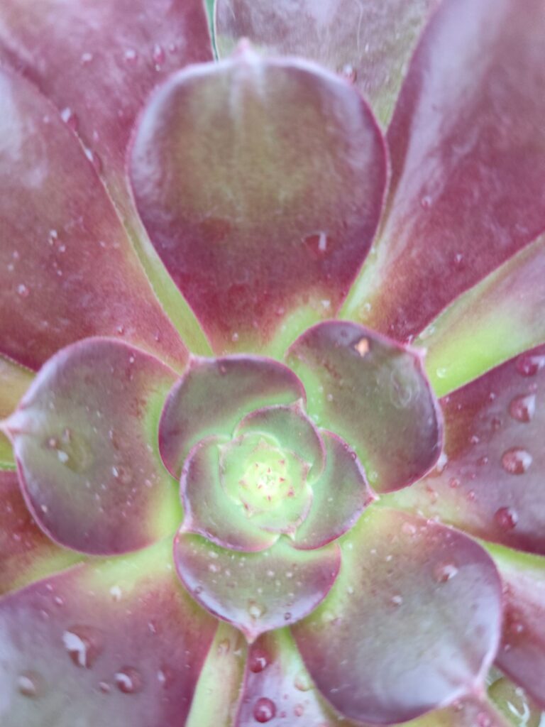 Leaf color ranges from deep burgundy to almost black, often with green tones near the center of the rosette, especially during periods of lower light.