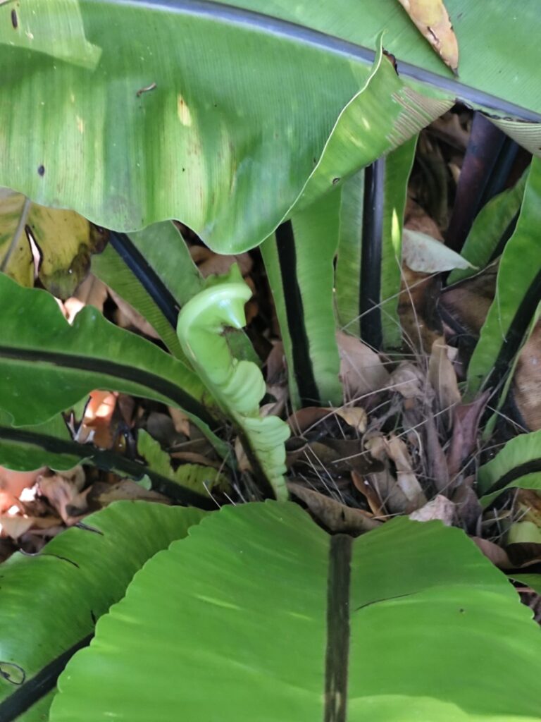 Asplenium nidus has a moderate growth rate under suitable conditions. New fronds emerge from the center of the rosette and gradually unfurl.