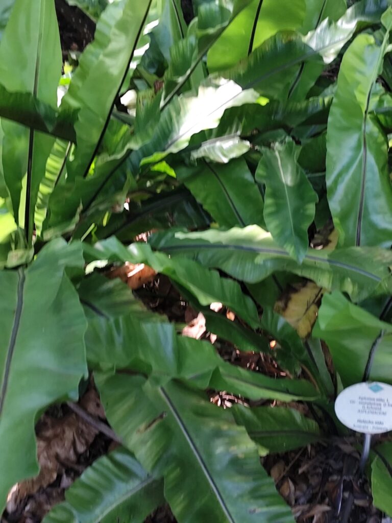 Asplenium nidus, commonly known as the bird’s nest fern, is a tropical fern admired for its large, bright green, simple fronds arranged in a central rosette. The growth form resembles a bird’s nest, which gives the plant its common name.