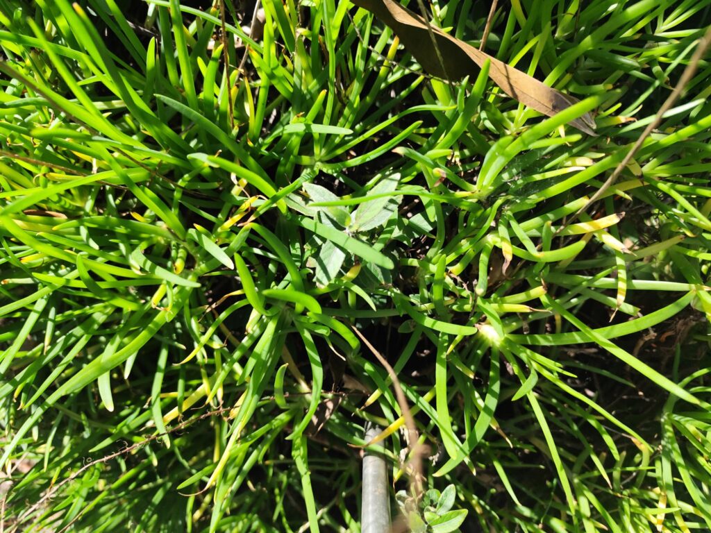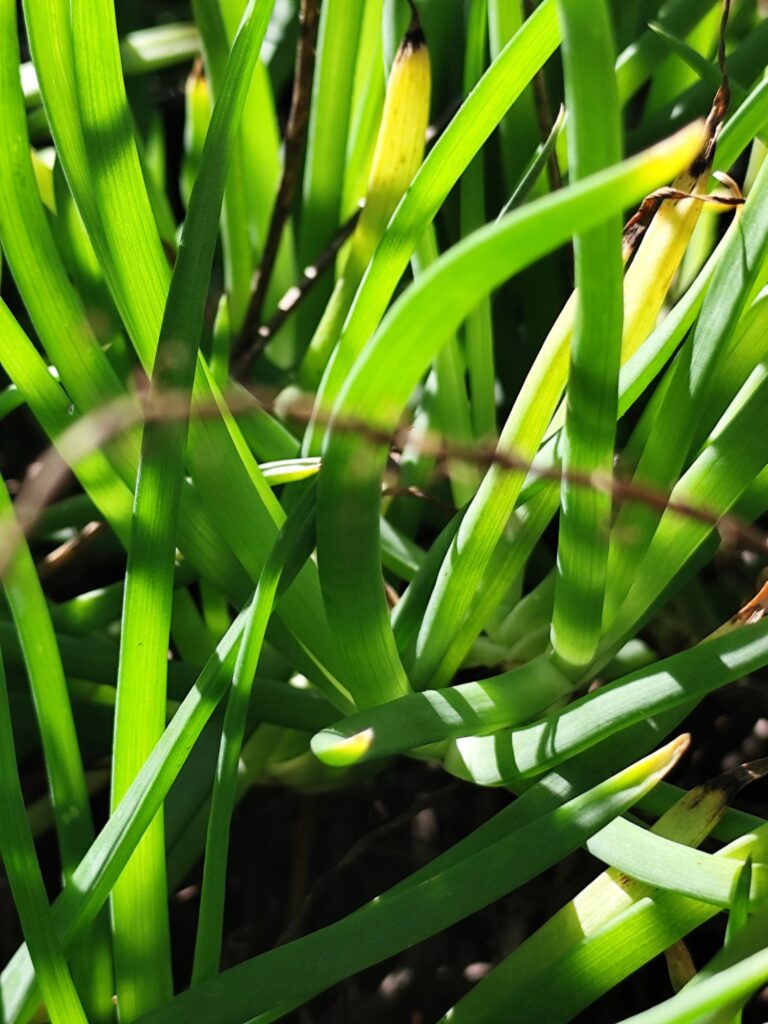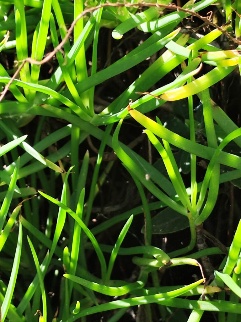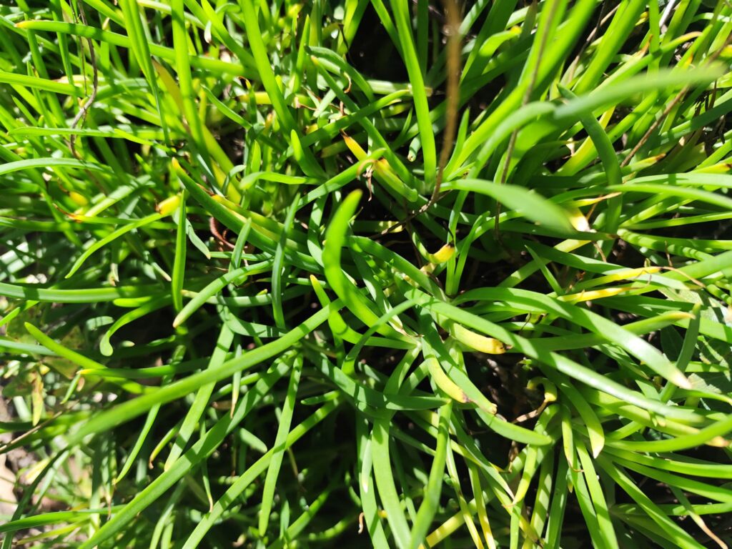 This plant forms clumps of narrow, fleshy, grass-like leaves that store water, allowing the plant to survive prolonged dry periods. The leaves are typically green to blue-green and emerge from a short basal stem.