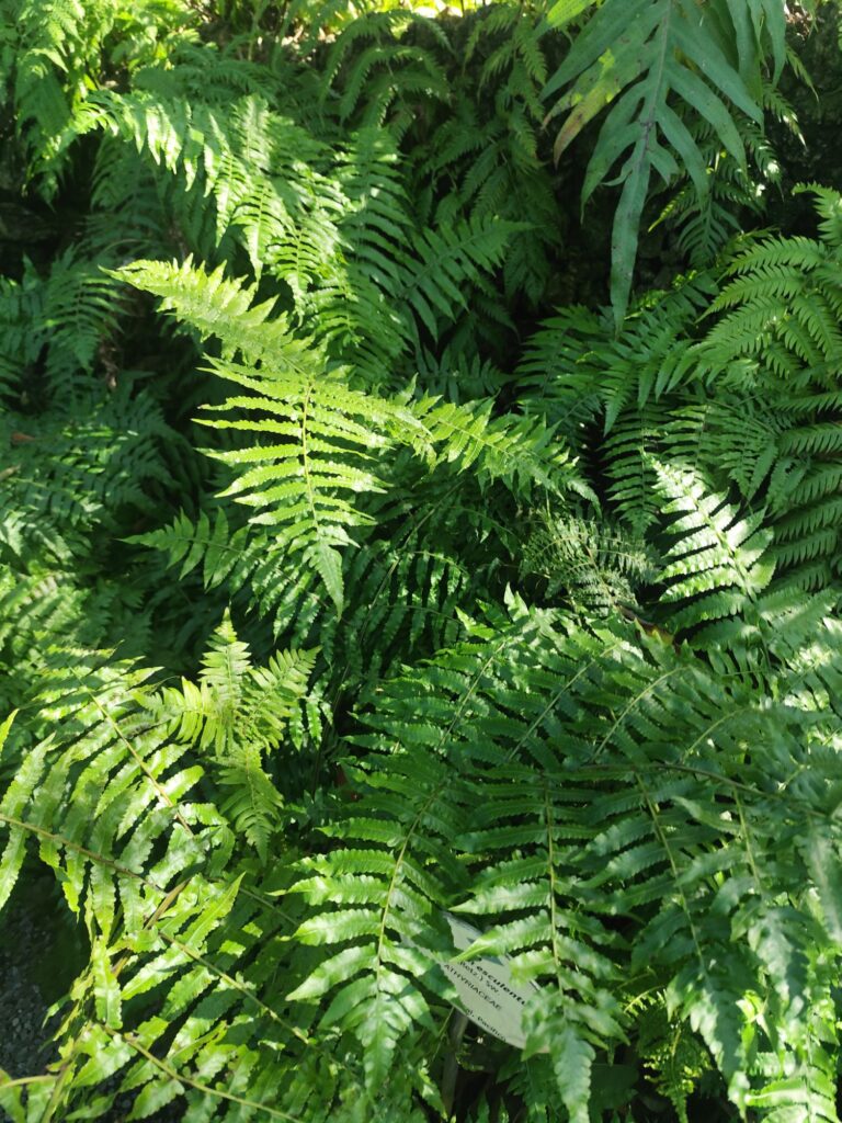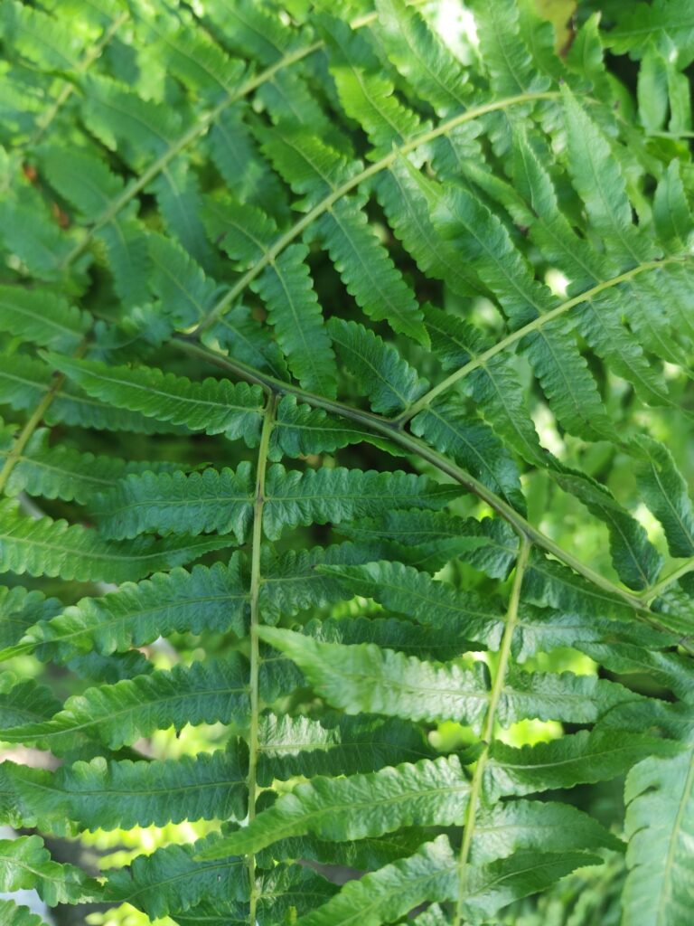 This species forms clumps of upright fronds arising from a short rhizome. The fronds are large, arching, and finely divided, giving the plant a lush and feathery appearance.