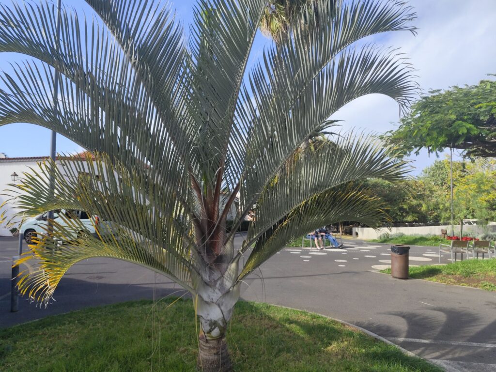 The palm is highly valued in warm climates for its architectural form, moderate size, and suitability as a focal point in gardens and public spaces.
