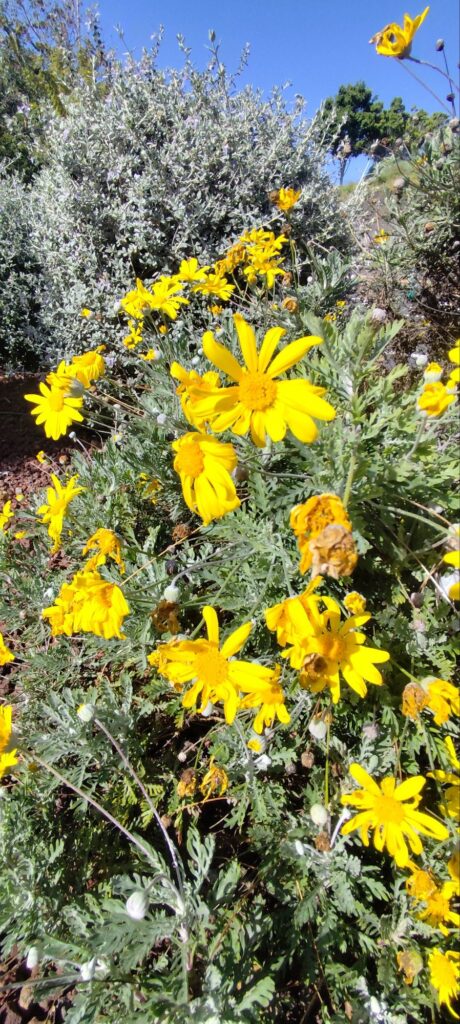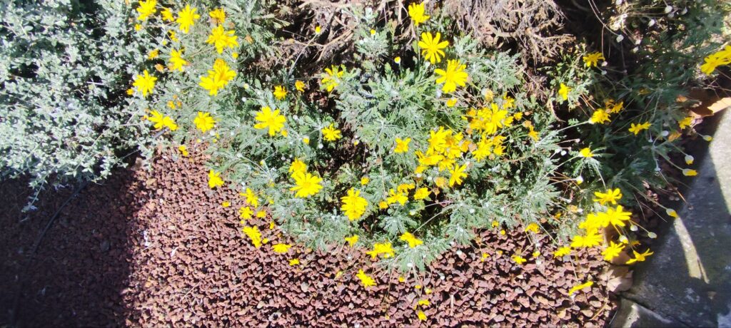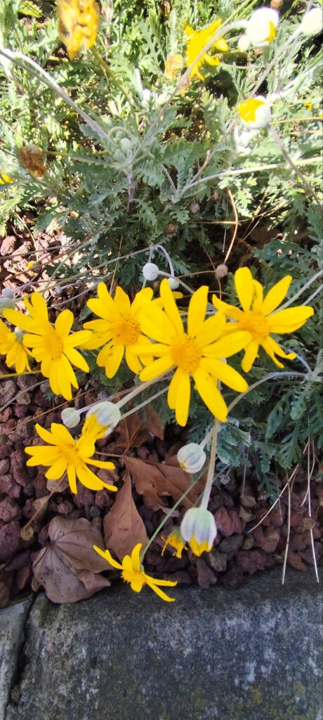 Euryops pectinatus is known for its exceptionally long flowering period. In mild climates, it can flower from autumn through spring, and sometimes nearly year-round.