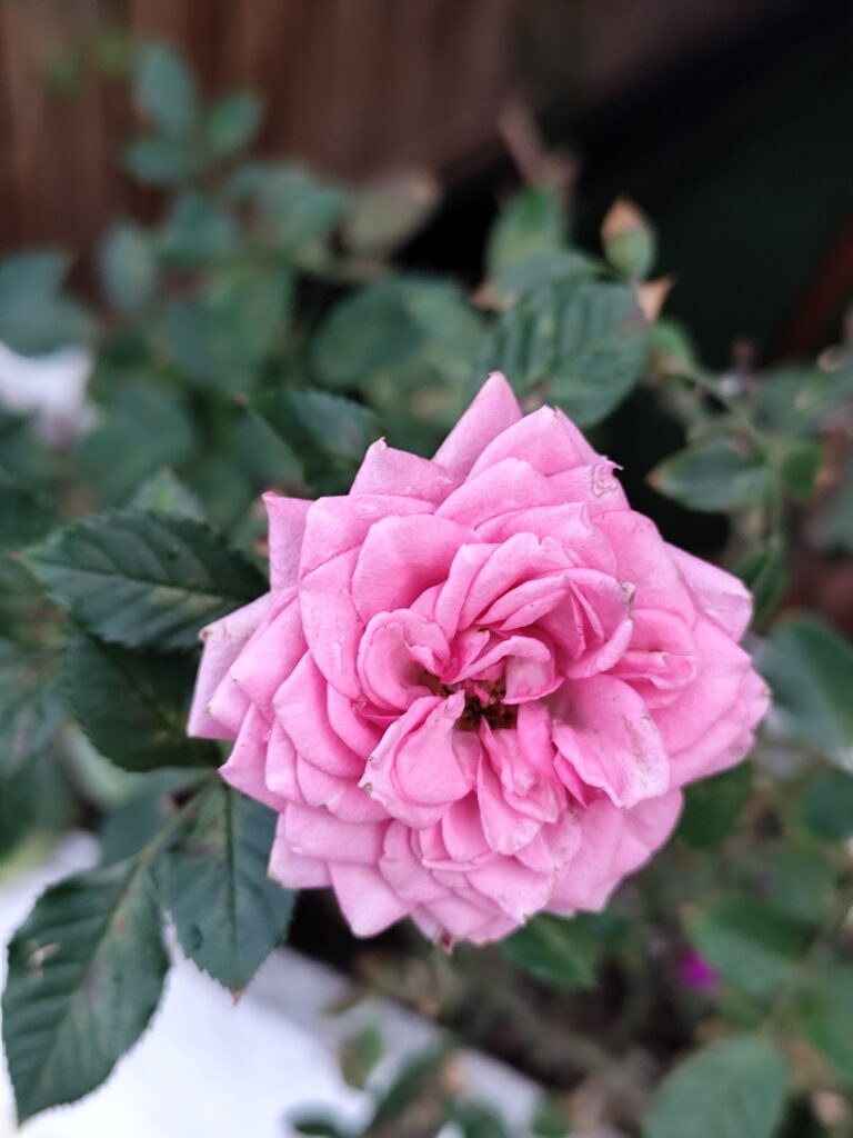 ‘Ispahan’ grows as a large, arching shrub, typically reaching heights of 1.5 to 2 meters. It produces soft pink, densely petaled flowers with a relaxed, traditional appearance.