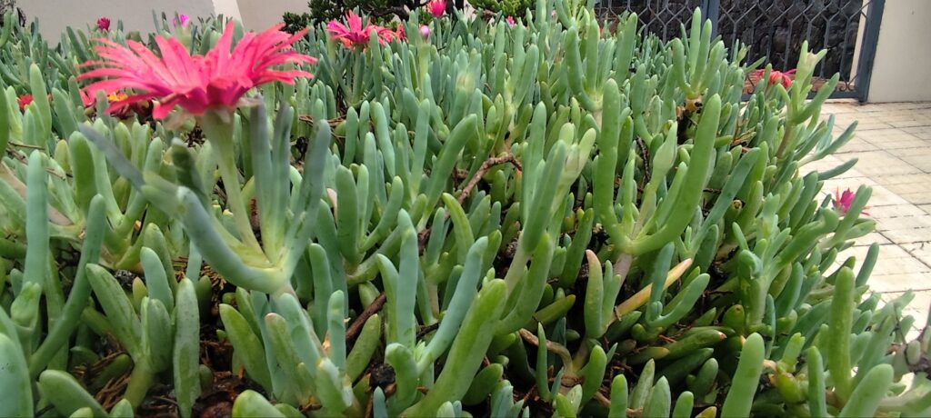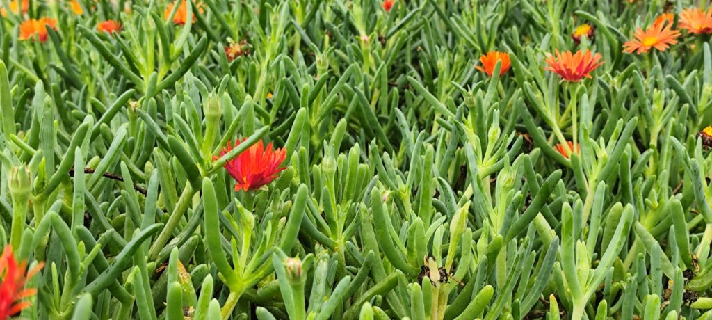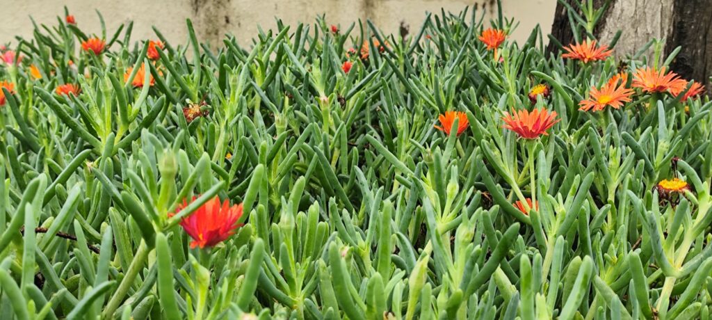 Malephora crocea is widely used as ground cover in rock gardens, slopes, borders, and roadside landscaping. It is particularly effective in water-wise and Mediterranean-style gardens.