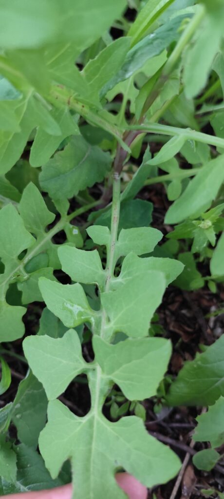 This plant forms a basal rosette of deeply lobed, soft-textured green leaves. The leaves resemble those of lettuce, which explains its common names.