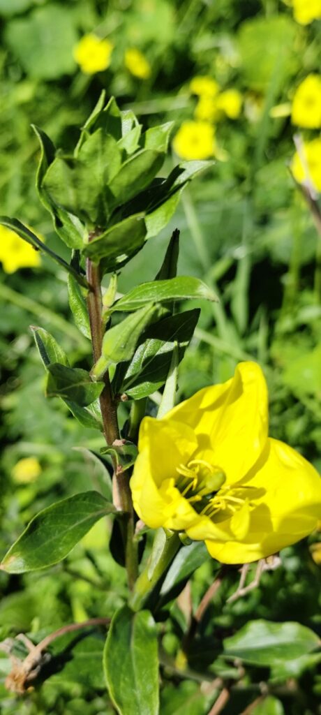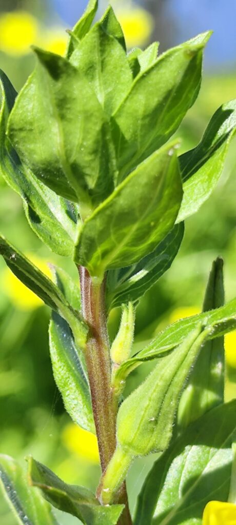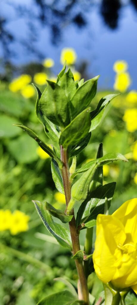Oenothera biennis is notable for its evening-blooming behavior. The flowers typically open at dusk and may remain open through the night and into the morning.