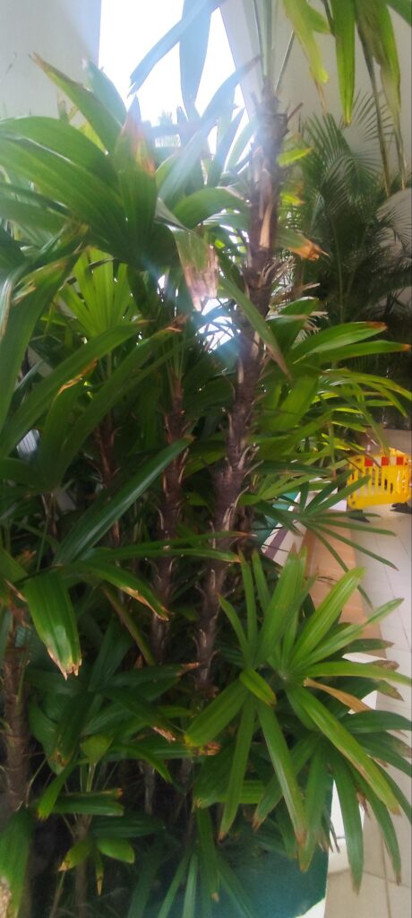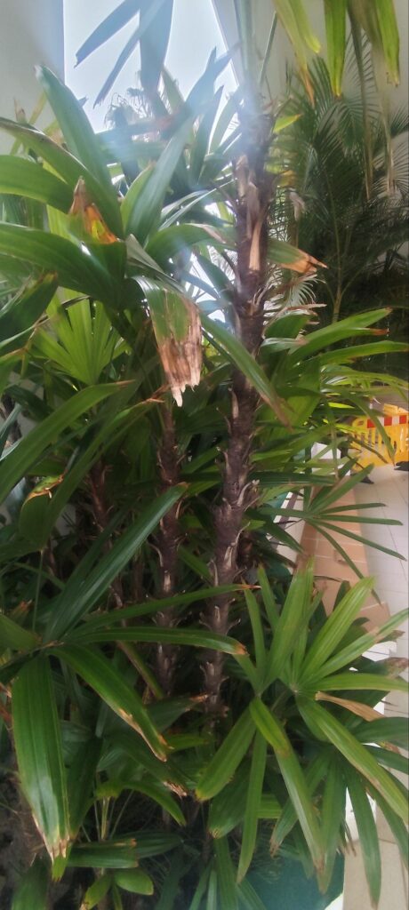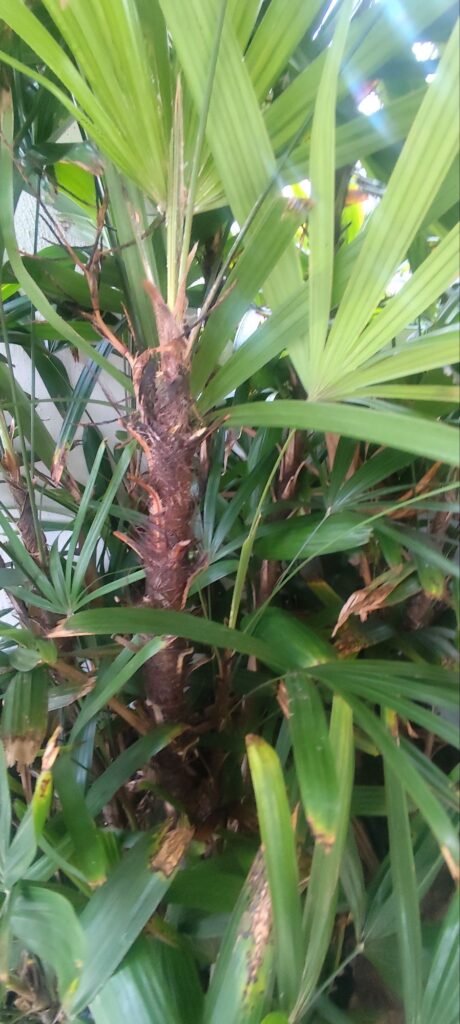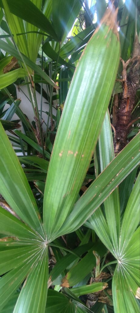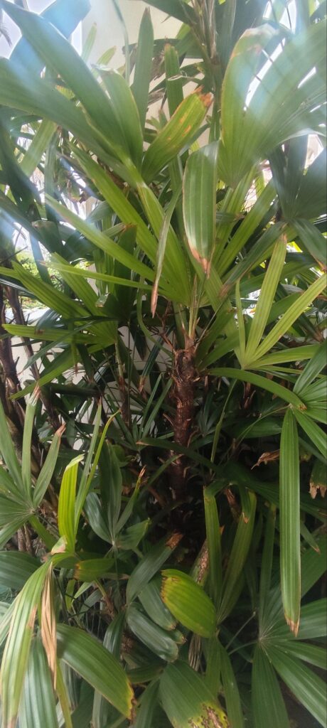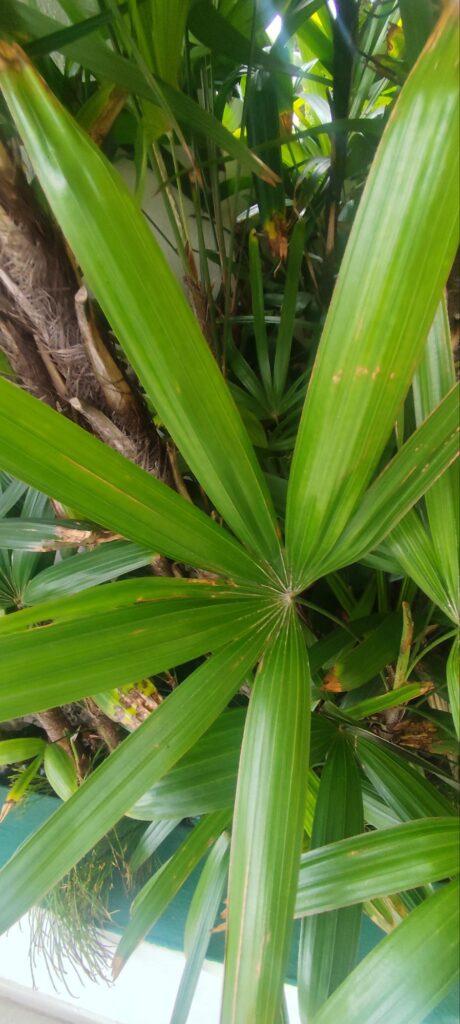 Visually, the Chinese palm adds a calm, refined tropical feel with clean lines and soft texture.