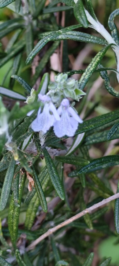 Salvia rosmarinus usually flowers from late winter through spring, with additional sporadic blooms throughout the year in mild climates.