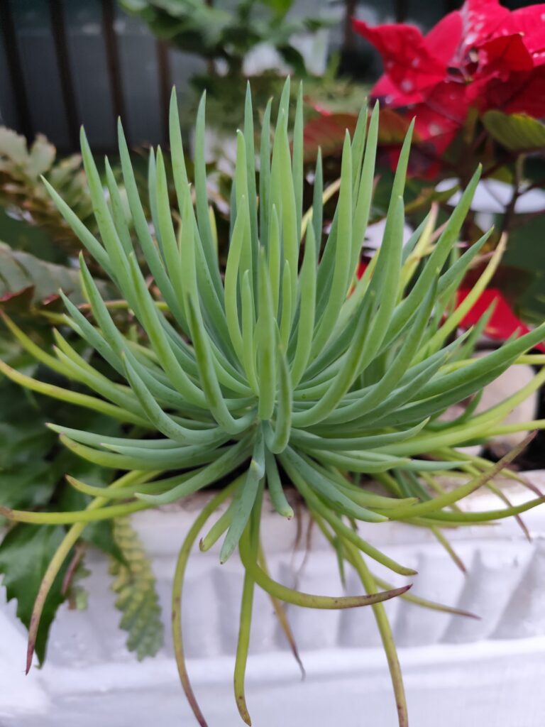 Senecio vitalis, commonly known as blue chalk sticks, is a drought-tolerant succulent valued for its upright, finger-like leaves and striking blue-green coloration. It is widely used in warm-climate landscaping for its modern appearance, low water needs, and strong visual contrast.
