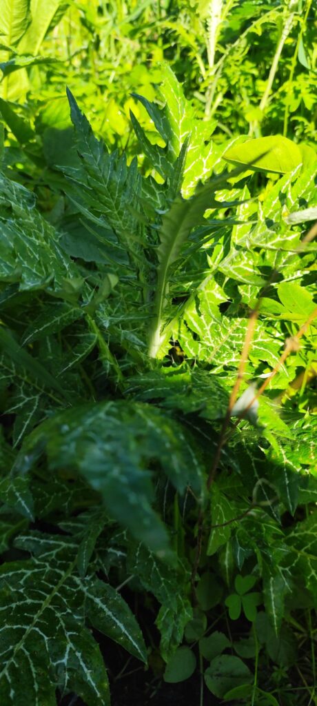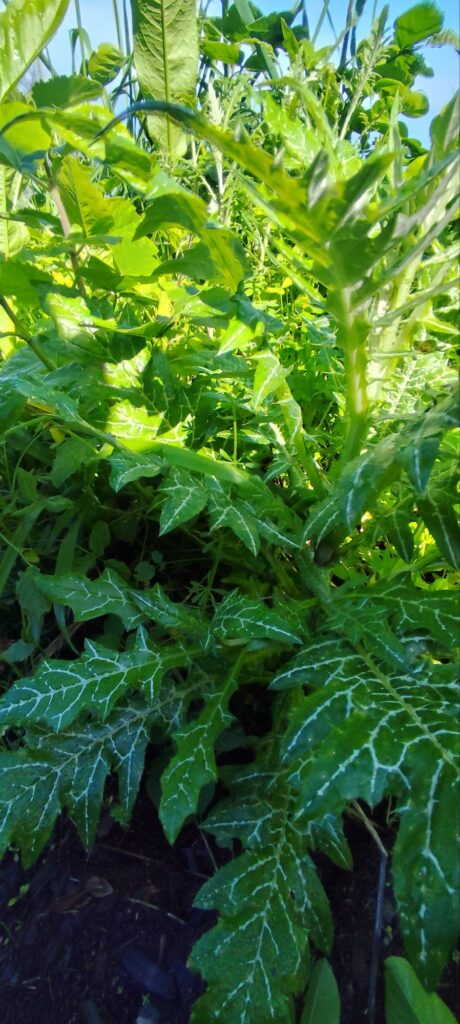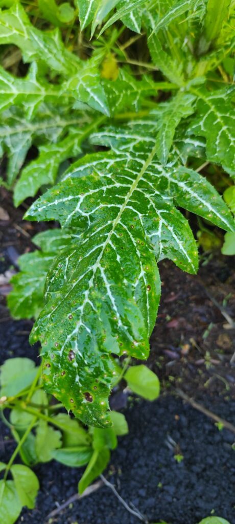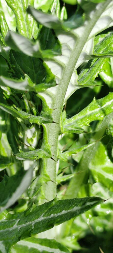 Silybum marianum has sharp spines that can cause injury. Care should be taken when planting near walkways or handling the plant.