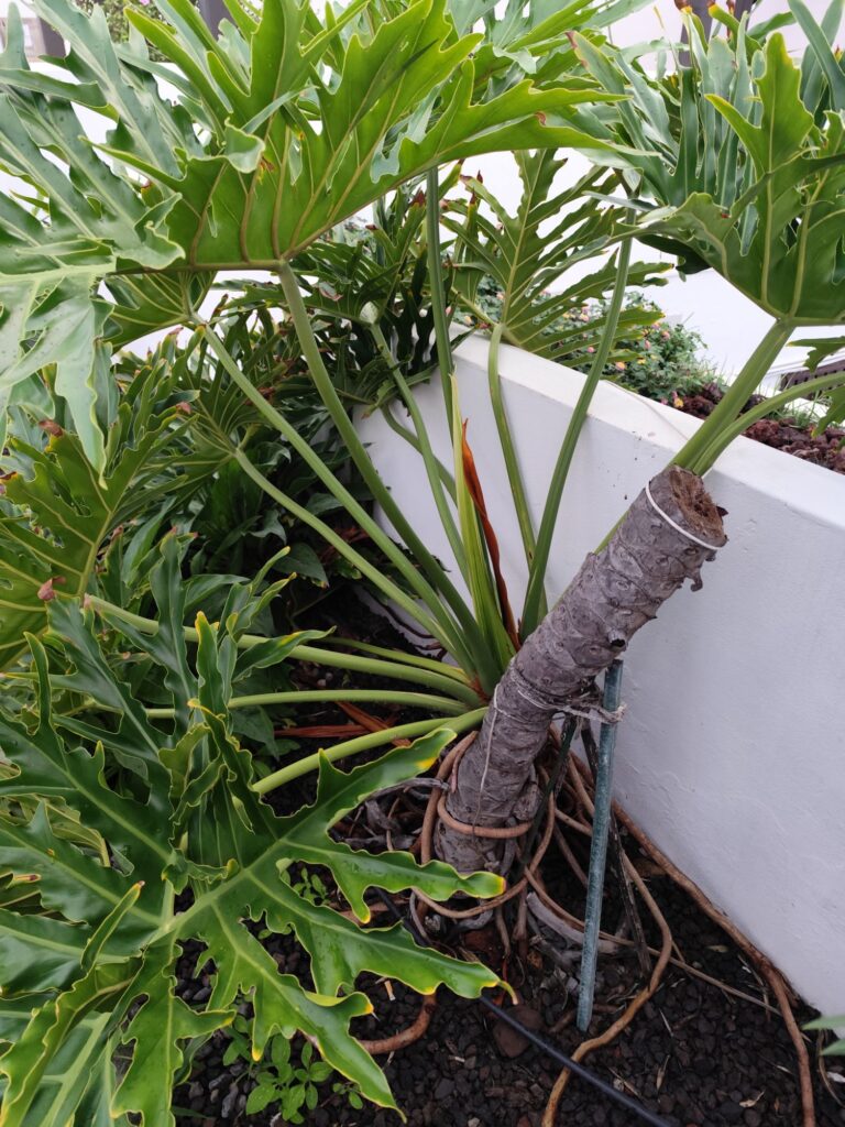 As the plant matures, it develops a strong, self-supporting structure with aerial roots that help anchor it to the ground and provide additional stability.